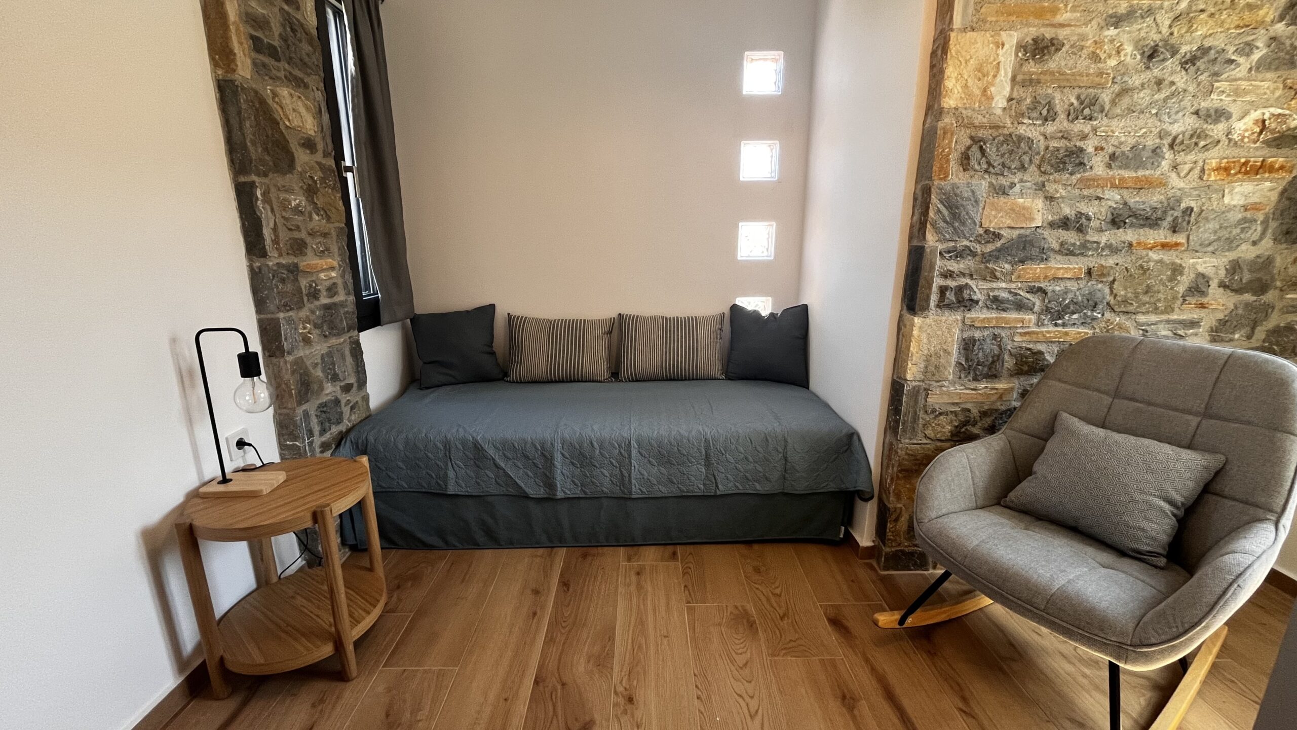 The layout of Melíti maisonette is designed to provide ample space and convenience for guests. Spread across two floors, it features two bedrooms and a bathroom on the upper level, providing privacy and tranquility for resting after a day of exploration or relaxation. The bedrooms are likely furnished with cozy beds and essential amenities to ensure a comfortable stay.